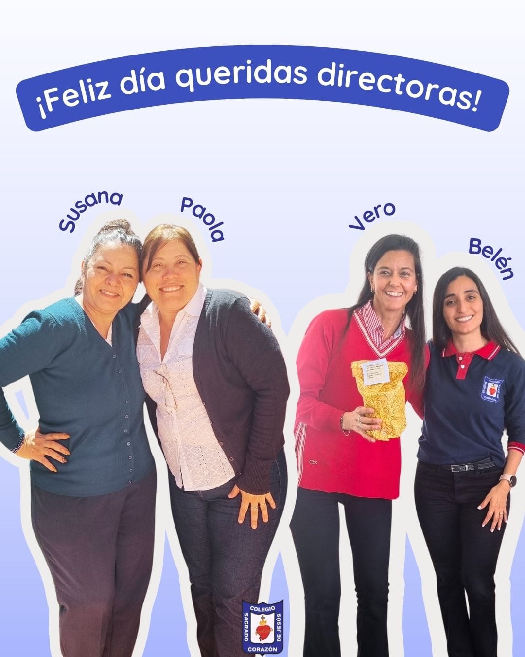 28 de septiembre - Con mucho cariño, hoy saludamos a nuestras Directoras y Vicedirectoras 💕: Susana Bustos y Paola Carrizo del nivel Inicial y Primario; Verónica Zambelli y Belén Toledo del Nivel Secundario. Que el Sagrado Corazón y Madre Catalina las ilumine y guíe en su importante labor. 🌟 Gracias por su dedicación, cercanía y presencia constante. ¡Feliz día ❤️!