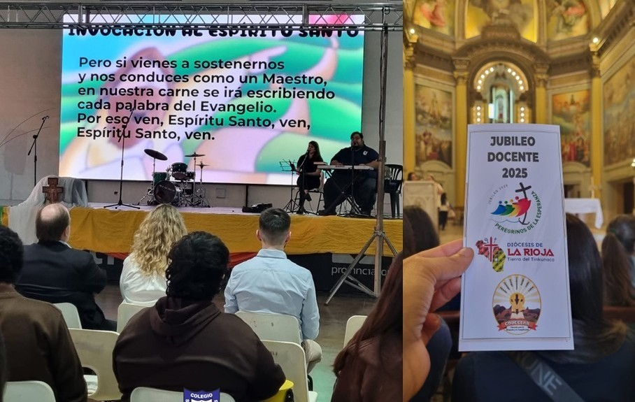 El día martes 16 de septiembre vivimos el JUBILEO DOCENTE en el Paseo Cultural junto a los docentes de colegios católicos de nuestra diócesis. Fue un hermoso encuentro de charlas, reflexiones acerca del pacto educativo en Argentina, enviados a educar en la esperanza, y los desafíos de los docentes hoy, dejándonos el corazón encendido❤️🔥 para continuar con nuestra misión de educar. Gracias CODECLAR por la organización y a quienes nos dieron luz en la jornada: Monseñor Dante Braida, Monseñor Alvarez, Adrian Alvarez (presidente del CONSUDEC) y lic.Federico Ridissi. Algunas frases que resonaron en el encuentro fueron: 🌱Educar es siempre un acto de esperanza. 🌱En la Educación se encuentra la semilla de esperanza. 🌱Solo hay Educación cuando la persona se despierta. 🌱Educar SIN bailar al ritmo de las ideologías. 🌱EDUCAR es un espacio para AMAR, hay algo más grande: EL PROYECTO DEL REINO Finalmente concluimos con la peregrinación a la Puerta Santa en la Iglesia Catedral y la Celebración Eucarística ❤️ donde nos encontramos con nuestro el Gran Maestro 🥰